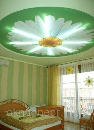 Натяжна стеля приховує будь-які комунікації та елементи систем, освітлювальні прилади, тріщини, плями, патьоки і інші нерівності.